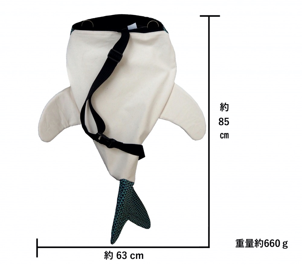 畳縁を使ったジンベイザメの形をモチーフにしたボディバッグです。斜め掛けでご使用いただけます。口部ファスナー開閉で荷物をしっかりキープしてくれます。