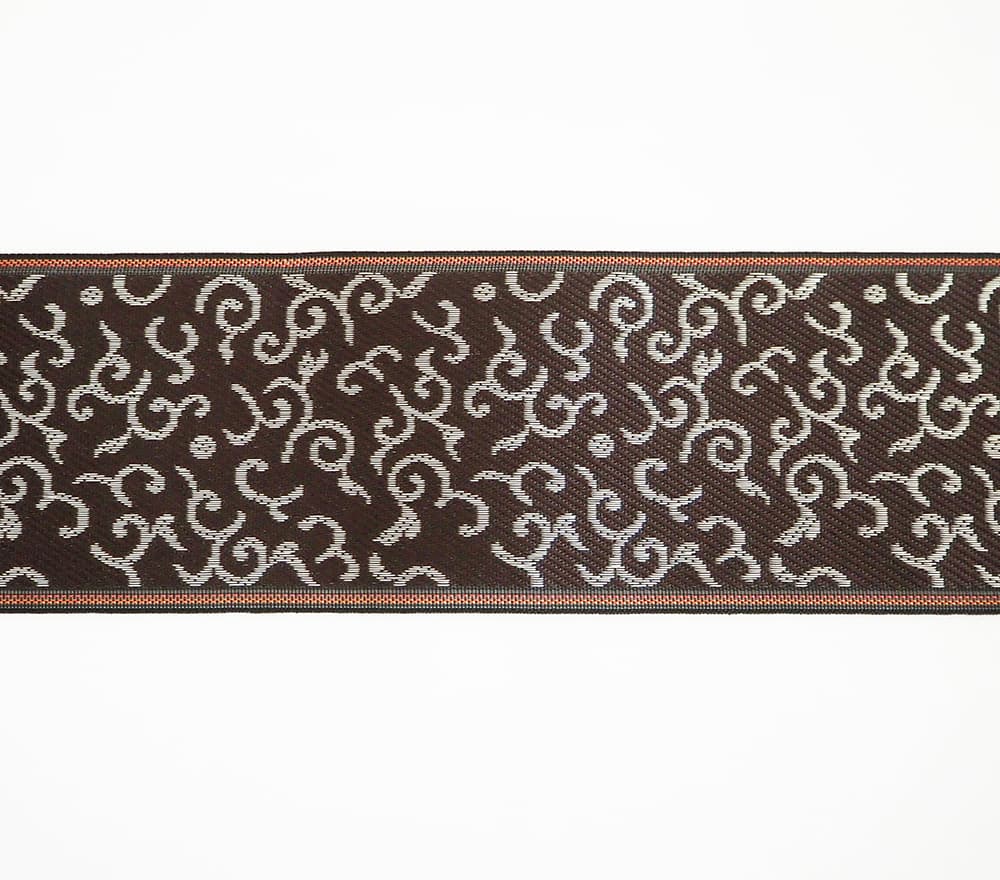 伝統的な和文様のひとつの「唐草」。つる草が四方八方に力強く伸びていく様子を模様にした「唐草」は、強い生命力や繁栄を象徴する縁起のよい柄です。茶色と白のさりげなくかわいい配色。