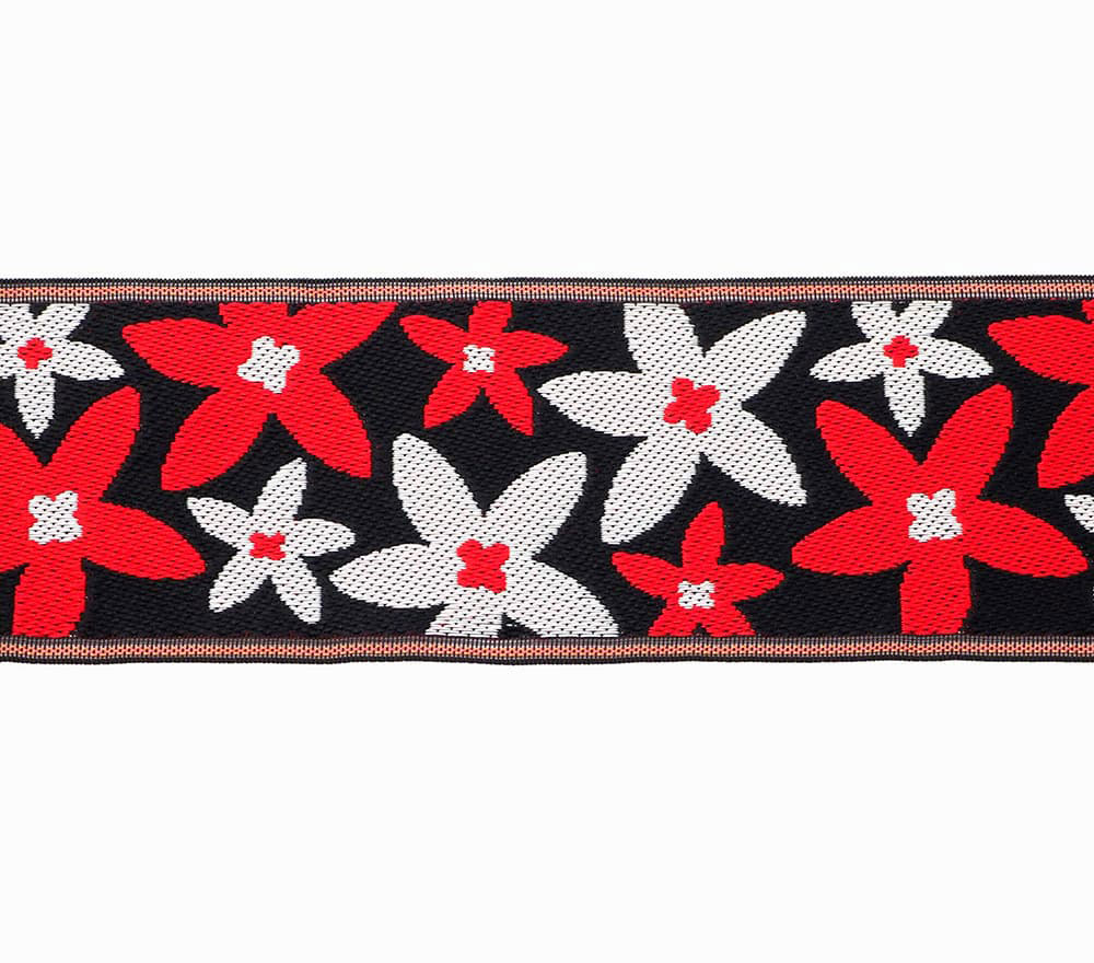 フランス語で「花」を意味するフルルと名付けられたこちらの畳縁は、明るくポップで、可愛らしい印象。花畑のような楽しい雰囲気をお楽しみください。モノトーンの中に赤色がぴりっと効いています。