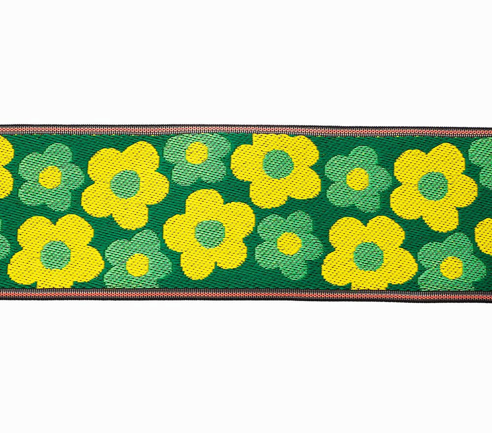 フランス語で「花」を意味するフルルと名付けられたこちらの畳縁は、明るくポップで、可愛らしい印象。花畑のような楽しい雰囲気をお楽しみください。ベースは葉っぱのようなグリーン。