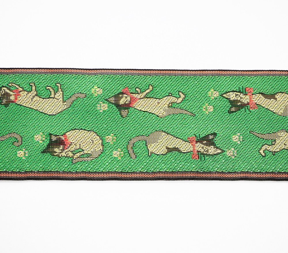 可愛らしいにゃんこがモチーフ!リボンをつけておめかしした、おしゃれなにゃんこたち。入園・入学グッズにおすすめです。ベースの色は明るめのグリーン。