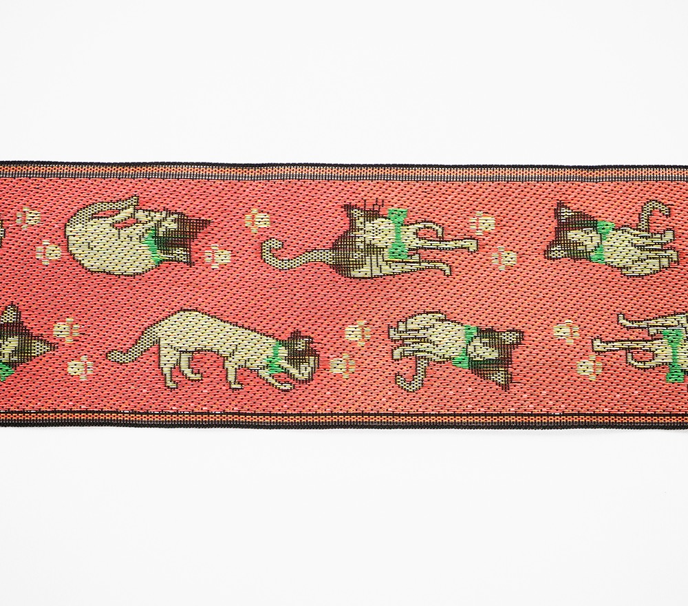 可愛らしいにゃんこがモチーフ!リボンをつけておめかしした、おしゃれなにゃんこたち。入園・入学グッズにおすすめです。ベースの色はピンク。