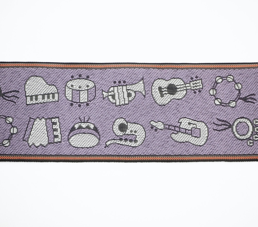 ギターやピアノ、タンバリンなどの楽器がモチーフ!今にも奏でそうなポップなデザインです。入園・入学グッズにおすすめ。習いごとのバッグにも使えそうですね。ベースの色は少し落ち着いたパープル。