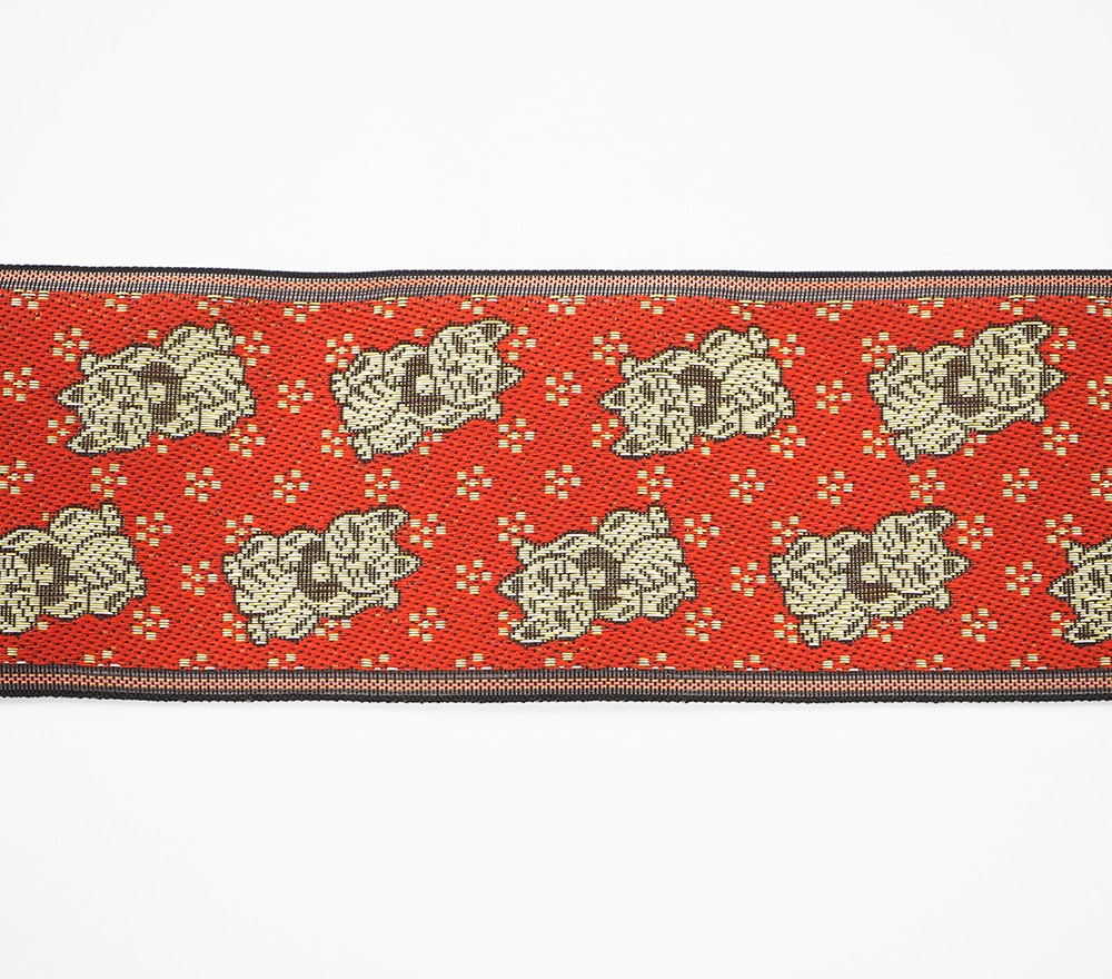 自社工場の機織り機で、熟練の職人が丁寧に丹精を込めてつくった畳縁(たたみべり)。