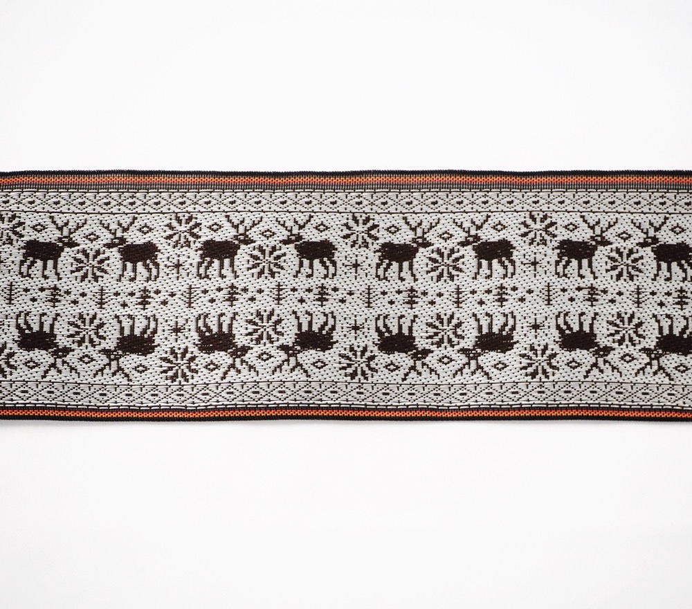 冬にぴったりの畳縁ができました。トナカイ、雪の結晶、幾何学模様を組み合わせたノルディック柄の畳縁です。