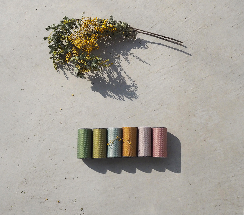 春色デニムシリーズの畳縁1.5mをセットにしました。春にそっと寄り添うような柔らかな色味と裏面はデニムカラー。