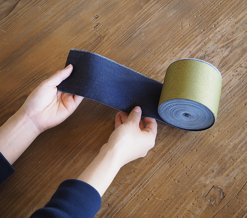 自社工場の機織り機で、熟練の職人が丁寧に丹精を込めてつくった畳縁(たたみべり)。