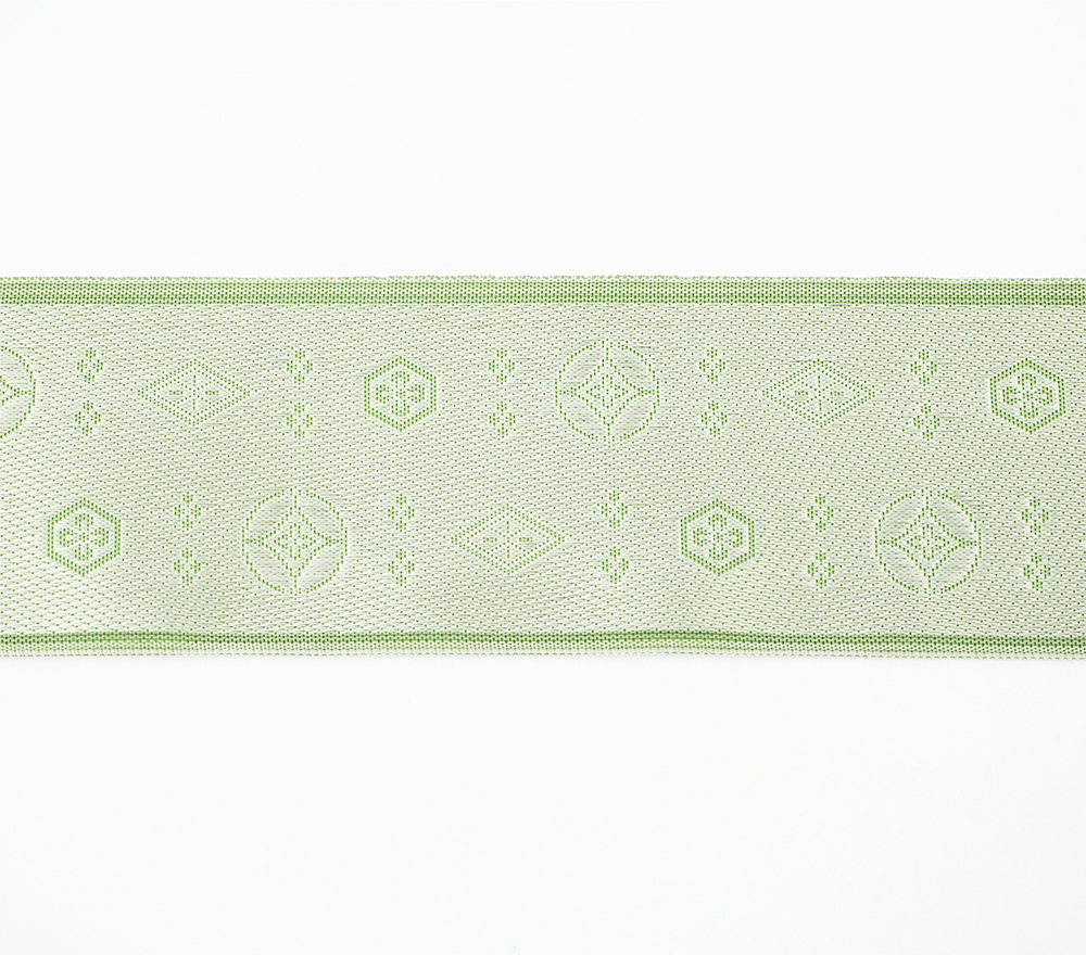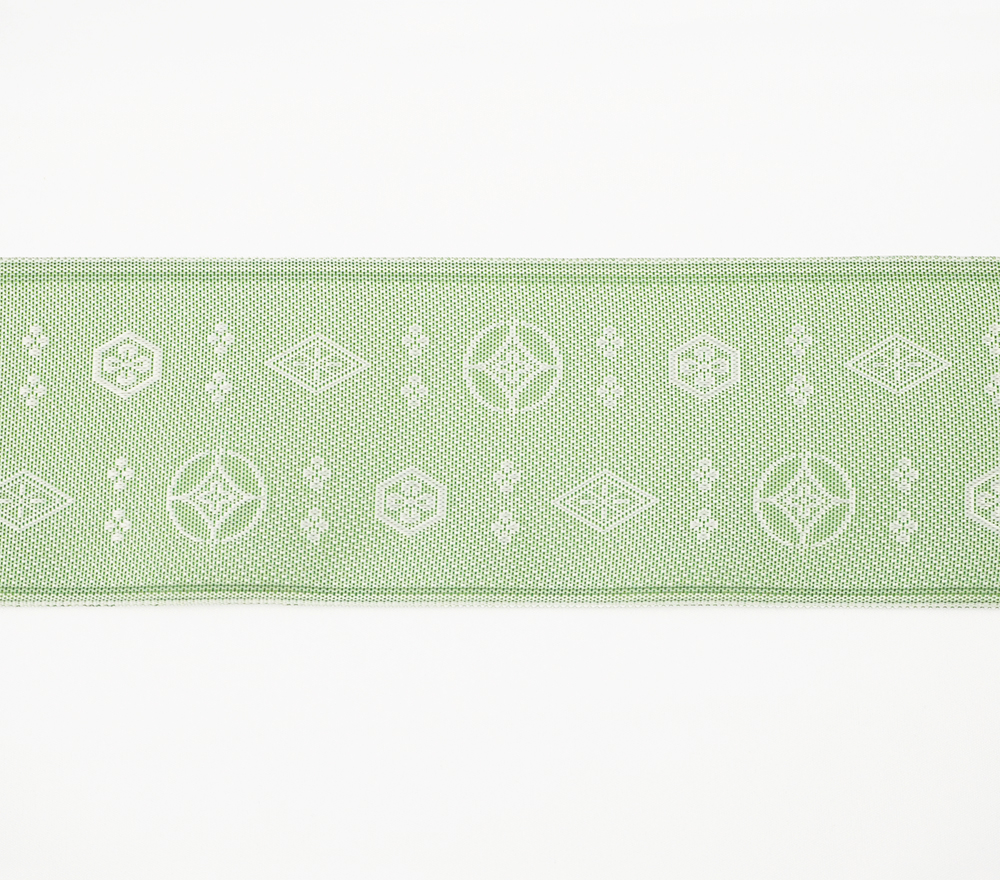 淡くてやさしい色に、菱や七宝などの伝統柄を並べました。色はやわらかなグリーンです。