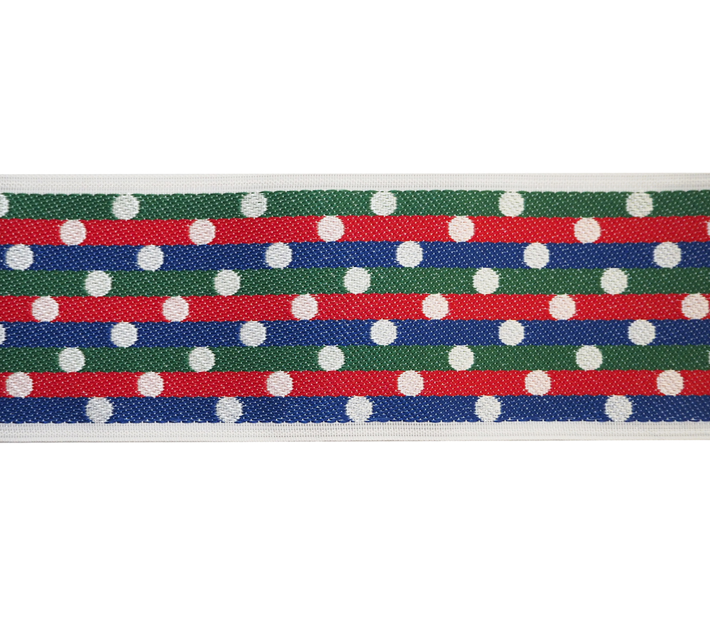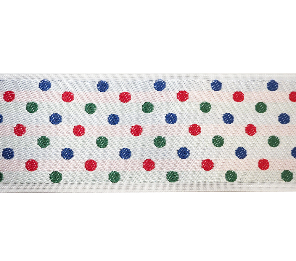 ちいさなドットの可愛らしい畳縁です。あか・あお・みどりとしろの楽しい配色。