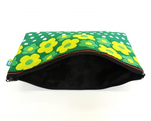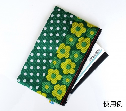 畳縁を組み合せて創ったポーチ、さりげない個性と軽さが魅力です。もちろん、畳縁だから丈夫。