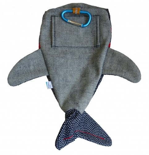 畳縁とデニムでできた畳縁鮫が成長して畳縁PLUSとして生まれました。口の中に、今までより大きい5.5インチサイズのスマートフォンなどが入ります。