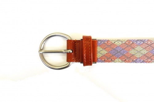 畳縁と合皮を組み合わせたお洒落なベルト。この可愛らしいデザインが人気です。畳縁を使ったベルトになります。