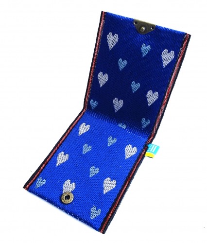 畳縁素材を使用した可愛いデザイン畳縁を使った小銭入れになります。接合部はボタン式。
