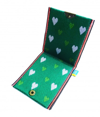 畳縁素材を使用した可愛いデザイン畳縁を使った小銭入れになります。接合部はボタン式。