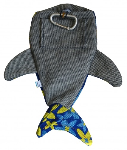 畳縁とデニムでできた畳縁鮫が成長して畳縁PLUSとして生まれました。口の中に、今までより大きい5.5インチサイズのスマートフォンなどが入ります。