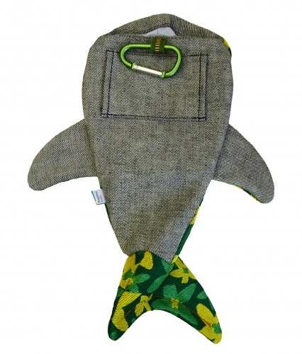 畳縁とデニムでできた畳縁鮫が成長して畳縁PLUSとして生まれました。口の中に、今までより大きい5.5インチサイズのスマートフォンなどが入ります。