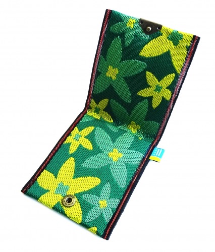 鮮やか、かわいい花柄が人気です。畳縁を使った小銭入れになります。接合部はボタン式。畳縁もあります。