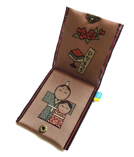 日本を代表するお雛様。海外の方々から人気です。畳縁素材を使った小銭入れになります。接合部はボタン式。