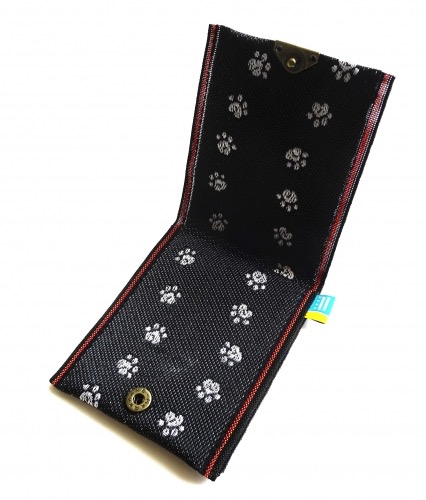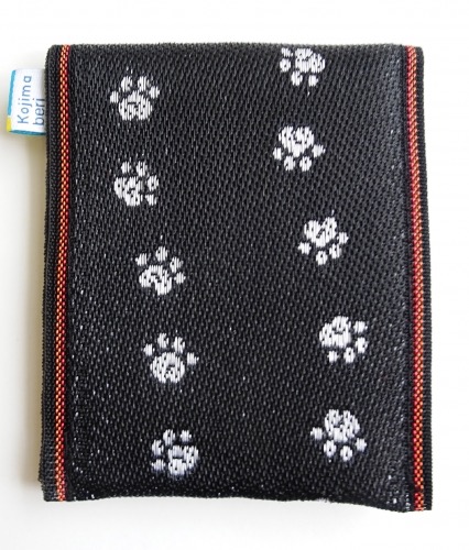 この足跡の愛らしさがたまらないのが人気の秘密です。畳縁を使った小銭入れになります。接合部はボタン式。畳縁もあります。