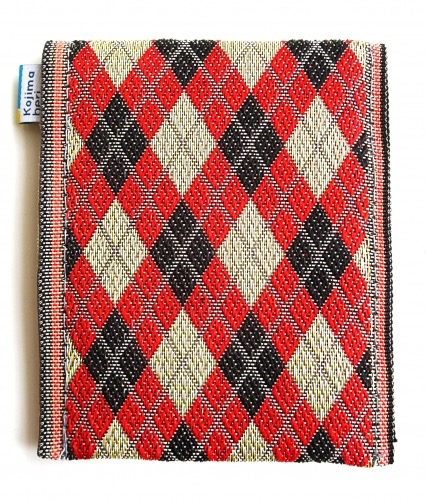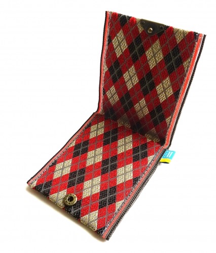 これも畳縁。アーガイルデザインが女性から好評です。畳縁を使った小銭入れになります。接合部はボタン式。畳縁もあります。