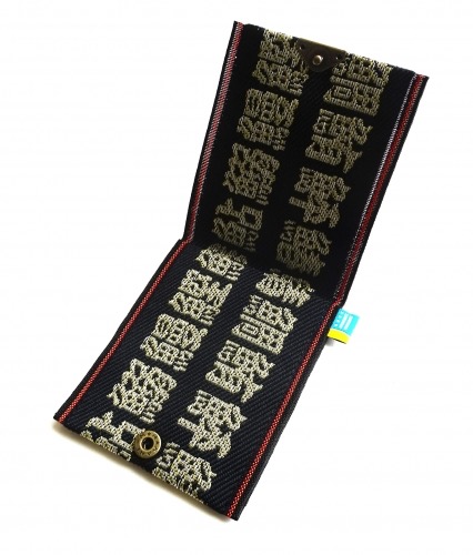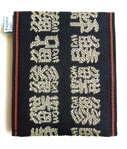 魚文字が人気です。海外の方々からも好評です。畳縁を使った小銭入れになります。接合部はボタン式。畳縁もあります。