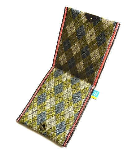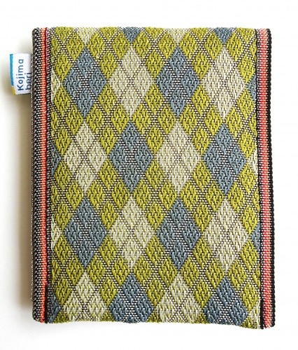 これも畳縁。アーガイルデザインが女性から好評です。畳縁を使った小銭入れになります。接合部はボタン式。畳縁もあります。