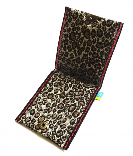 不滅のヒョウ柄。何故か人気です。畳縁を使った小銭入れになります。接合部はボタン式。畳縁もあります。
