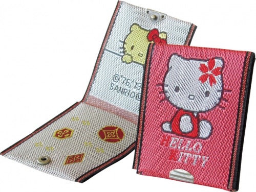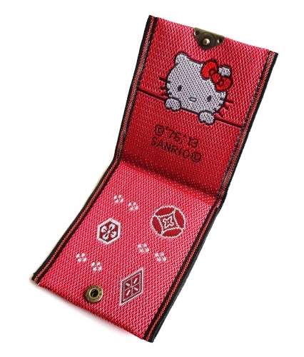 ハローキティ柄が女性、子どもから人気です。畳縁素材を使った小銭入れになります。接合部はボタン式。