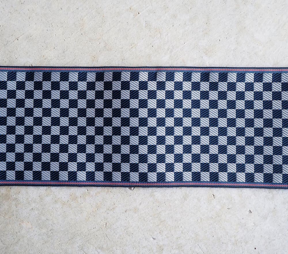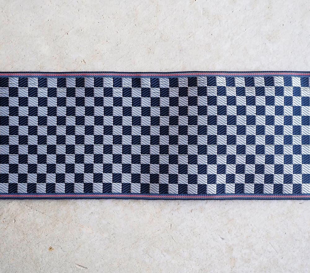 伝統的な和文のひとつ、市松文様。上下左右にどこまでも途切れることなく繋がっていく柄であることから、 子孫繁栄や事業拡大など縁起の良い意味があります。藍色と白のすっきりとした配色。