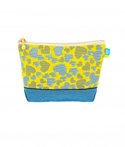 手のひらポーチ/ハート(黄青)×水色