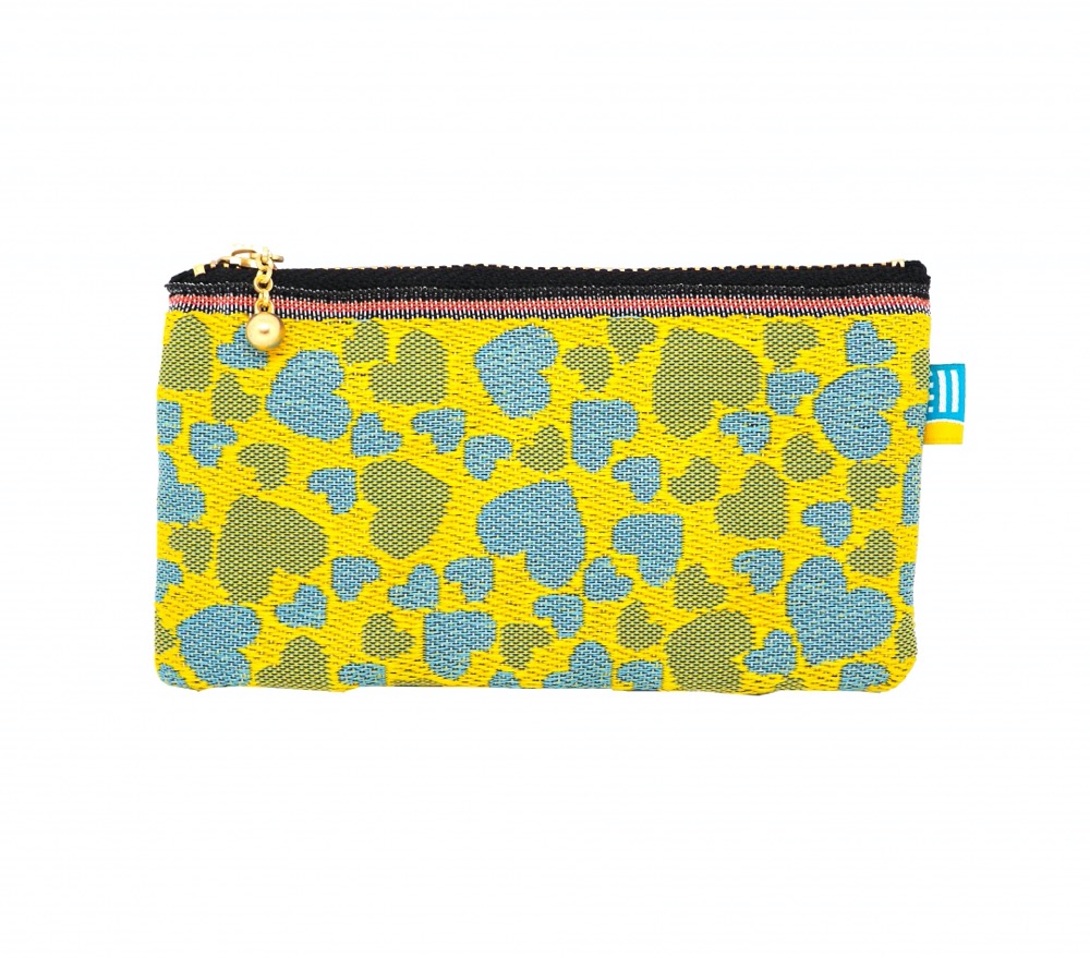 ZIP小銭入れ/ハート02(黄×水色)